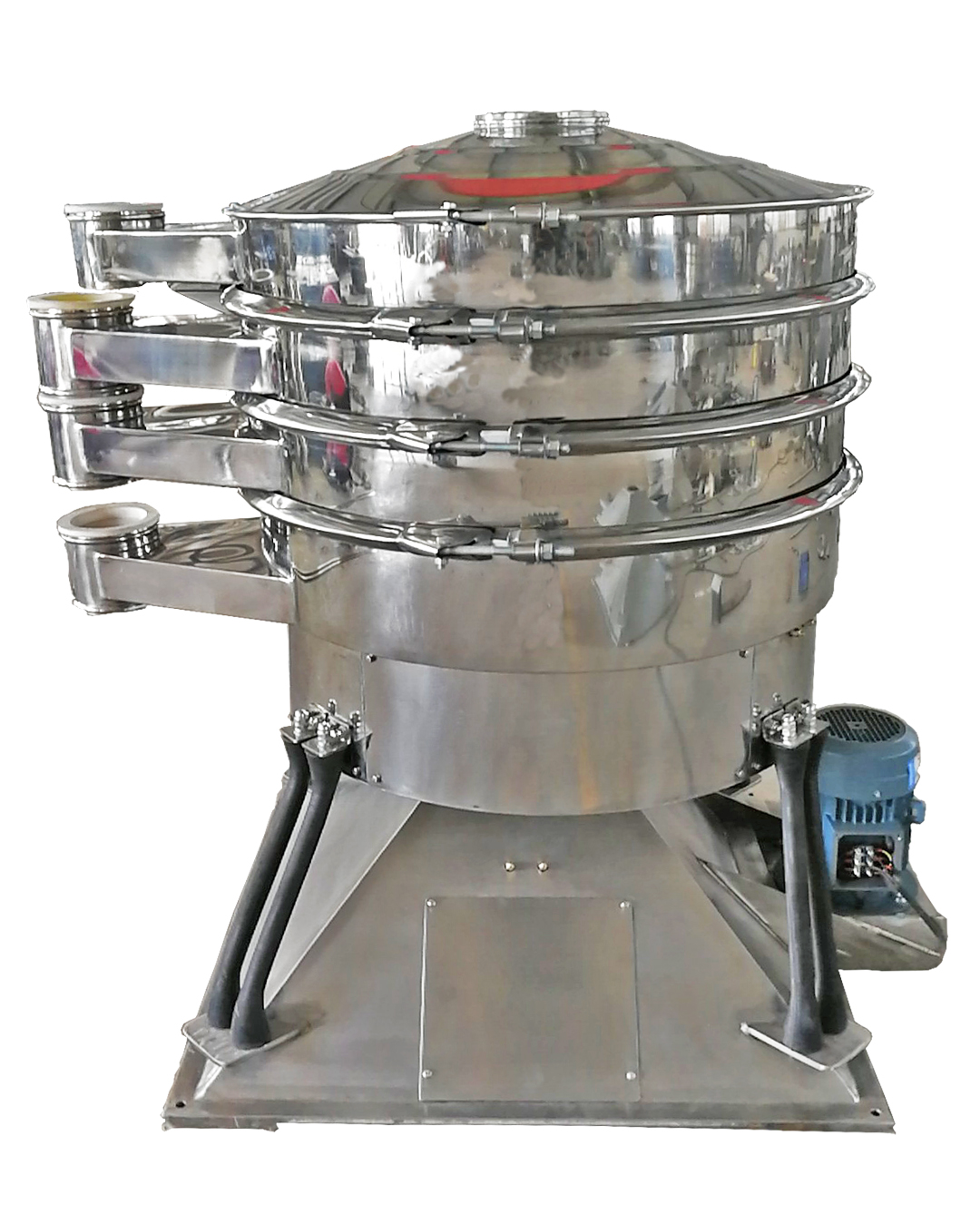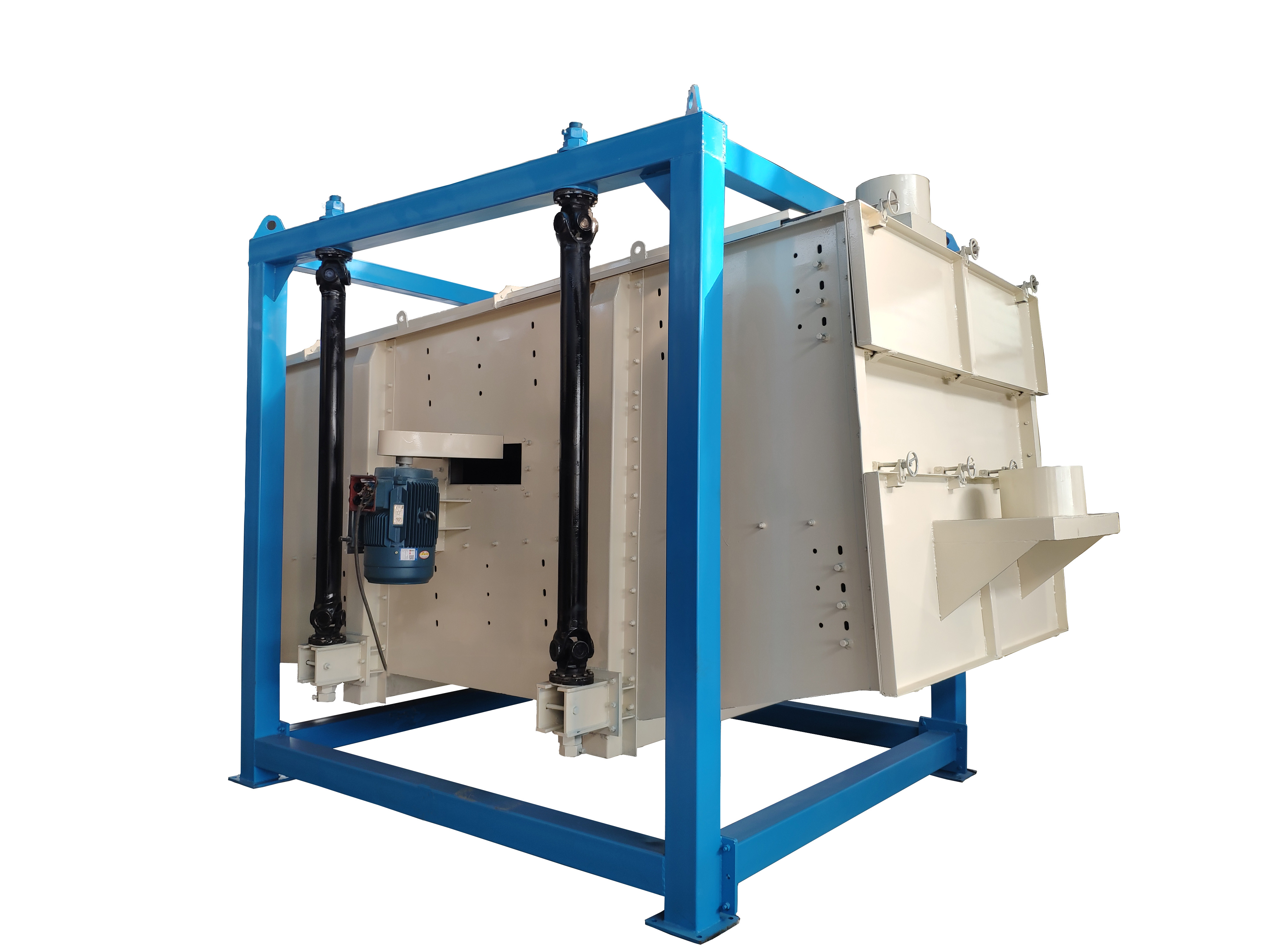 出料口:根據客戶的物料篩分需要進行各種不同設計的,由不同的網層要求進行變化,我們的設計更著力于方便大流量,快速不堵塞的流出篩體,改變各種角度、增加出料管道直徑、減少流出距離等各種工藝方法.