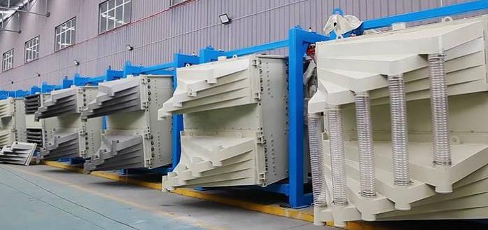 方形搖擺篩主要是由進料口、篩箱、驅動裝置、篩架、支撐架、減振裝置、出料口等組件構成。