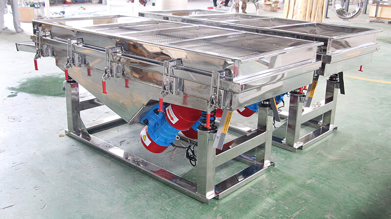 直線振動篩利用振動電機激振作為振動源,使物料在篩網上被拋起,同時向前作直線運動,物料從給料機均勻地進入篩分機的進料口,通過多層篩網產生數種規格的篩上物、篩下物、分別從各自的出口排出。具有耗能低、產量高、結構簡單、易維修、全封閉結構,無粉塵溢散,自動排料,更適合于流水線作業。