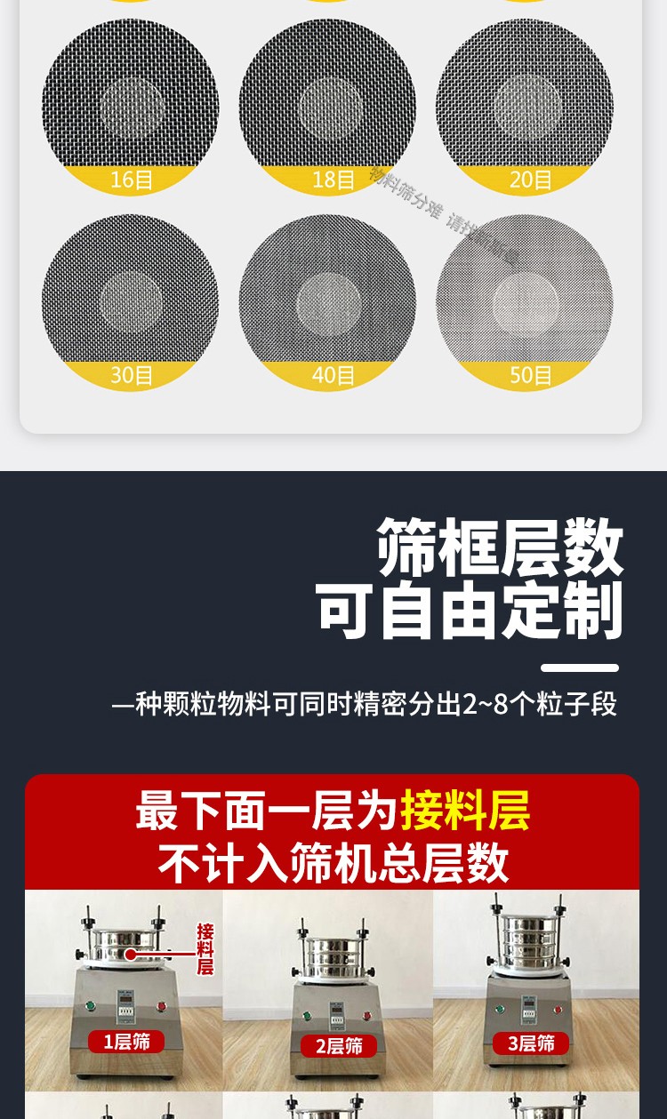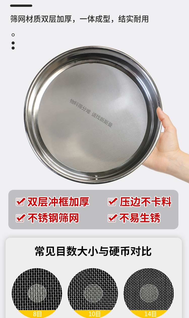 標(biāo)準(zhǔn)檢驗(yàn)篩(試驗(yàn)篩)在訂購(gòu)時(shí)請(qǐng)說(shuō)明所測(cè)試物料和篩分粒度,根據(jù)您提供的數(shù)據(jù)來(lái)確定篩框大小、層數(shù)及篩網(wǎng)尺寸。