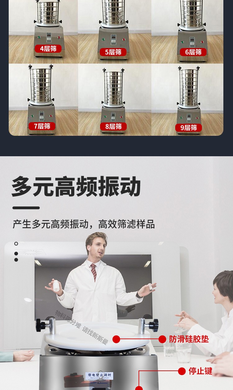 1. 標(biāo)準(zhǔn)試驗(yàn)篩要水平放置;確認(rèn)電源和銘牌要求相符,并確保接地;振動(dòng)部分不能與其它物體接觸;各部螺栓是否鎖緊。