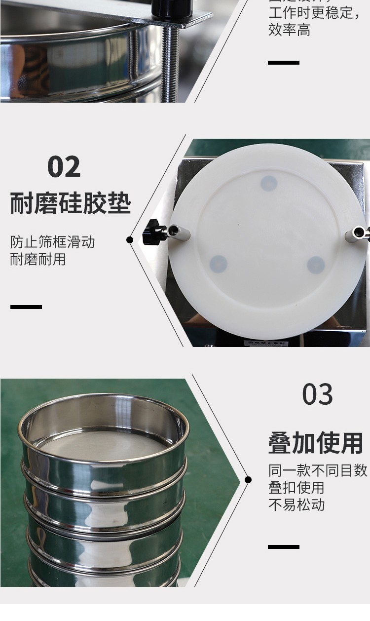 3. 把標(biāo)準(zhǔn)篩框按孔徑從小到大,從下到上依次疊放到篩框底座上。