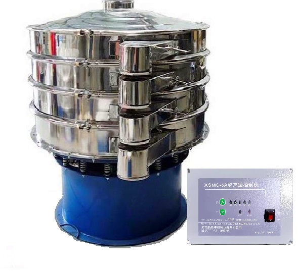 超聲波振動篩是在旋振篩的基礎上引入了超聲波清網裝置,通過將220V、50Hz或110V、60Hz電能轉化為18KHz的高頻電能,輸入超聲換能器,將其變成18KHz機械振動,從而達到高效篩分和迅速清網的目的,使超微細粉篩分成為易事。該系統在傳統的振動篩基礎上在篩網上引入一個低振幅、高頻率的超聲振動波(機械波),以改善超微細粉體的篩分性能。特別適合高附加值精細粉體的用戶使用。超聲波篩分系統是一種簡單實用、可靠的篩分系統,是當前網孔堵塞的有效的解決方法。可廣泛應用于制藥、冶金、化工、選礦、食品等要求精細篩分過濾的行業,篩分過濾精度高,有效解決因團聚、靜電、強吸附性卡堵網孔等篩分難題,是國內篩分行業的一項重大技術突破。