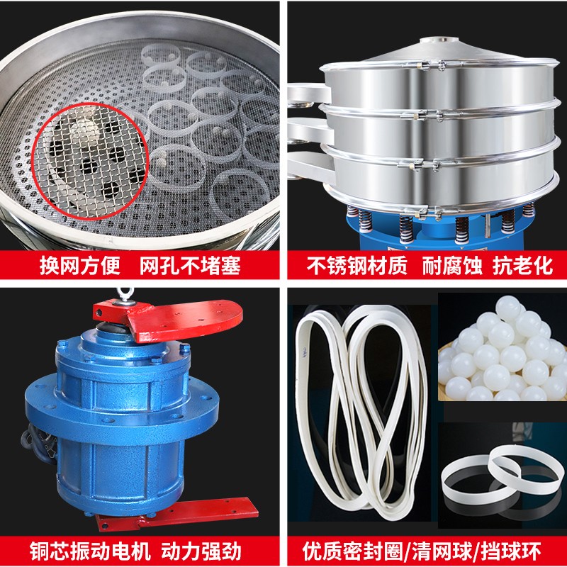 全封閉結構,粉末不飛揚、液體不泄露、網孔不堵塞、自動排放、機內無存料、網架結構無死角、篩網 使用面積增加。